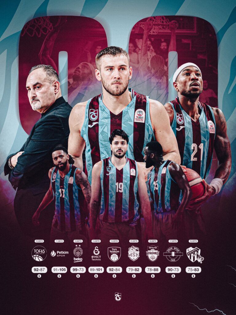 Der ganz klassische Aufsteiger ist Trabzonspor zugegebenermaßen nicht: Der Klub vom Schwarzen Meer gehört dank seiner erfolgreichen Fußballabteilung zu den größten Vereinen der Türkei und verfügt dementsprechend über finanzielle Möglichkeiten und infrastrukturelle Gegebenheiten, von denen andere Liga-Neulinge oft nur träumen können. Doch die guten Grundvoraussetzungen schmälern in keiner Weise, was die Bordeaux-Blauen in der aktuellen Saison in der Basketbol Süper Ligi, der höchsten türkischen Spielklasse, bislang geleistet haben. Die Mannschaft von Trainer Selçuk Ernak steht nach 18 Spieltagen völlig überraschend auf dem dritten Rang hinter Fenerbahçe und Beşiktaş und hat bereits 13 Siege auf dem Konto. Besonders beeindruckend ist dabei die aktuelle Form Trabzonspors: Die letzten neun Begegnungen wurden allesamt erfolgreich bestritten, darunter ein fulminanter 99:73-Heimsieg über den titelhaltenden türkischen Meister und EuroLeague-Champion Fenerbahçe sowie Erfolge gegen Galatasaray und Türk Telekom Ankara. Für den einen oder anderen Trabzonspor-Fan dürften sich solche Sternstunden teils noch immer wie ein Traum anfühlen – vor allem, wenn man bedenkt, dass die Basketball-Abteilung des Traditionsvereins 2018 dem finanziellen Ruin gegenüberstand und erst seit 2024 wieder am Spielbetrieb teilnimmt.