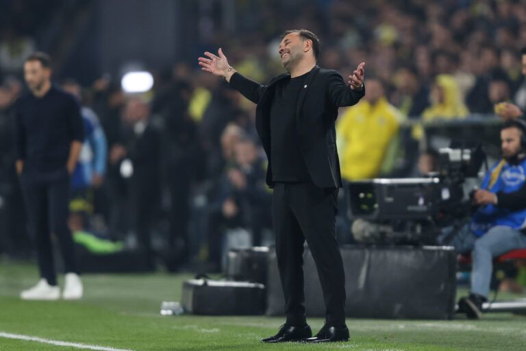 ISTANBUL, TURKEY - DECEMBER 1: Head coach Okan Buruk of Galatasaray reacts during the Trendyol Süper Lig match between Fenerbahce SK and Galatasaray SK at Ulker Sukru Saracoglu Stadium on December 1, 2025 in Istanbul, Turkey. (Photo by Ahmad Mora/Getty Images)